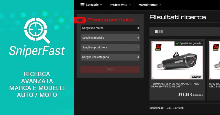 WRS, azienda leader nella produzione e vendita di accessori per moto sceglie SniperFast per migliorare le performance di ricerca del proprio ecommerce.