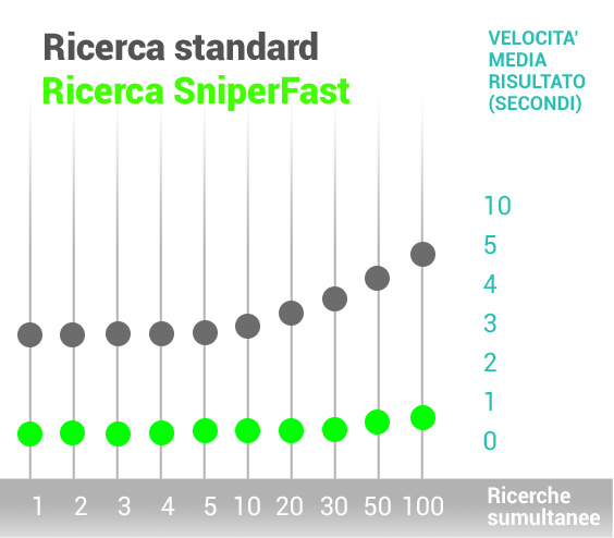 SniperFast è velocissimo. Restituisce risultati in pochi centesimi di secondo anche in siti con milioni di prodotti, in tempo reale, senza mai ricaricare la pagina.