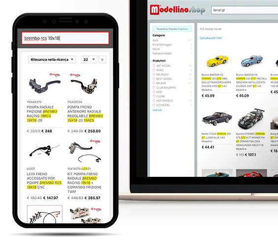 Il sistema di ricerca SniperFast è un servizio esterno che indicizza i contenuti del tuo catalogo e risponde con i risultati di ricerca corretti. Per attivarlo è necessario installare un modulo sul tuo sito e sottoscrivere un abbonamento.